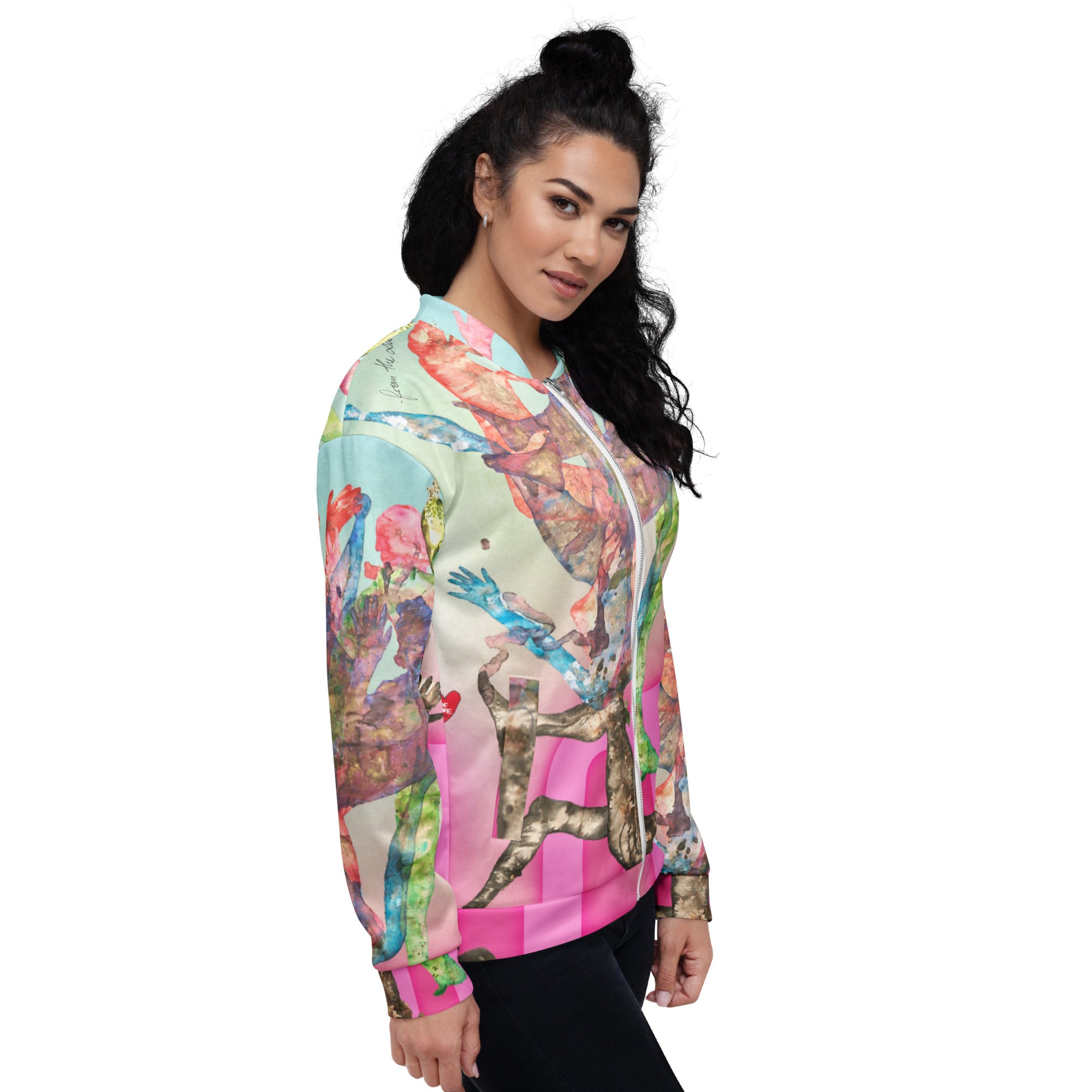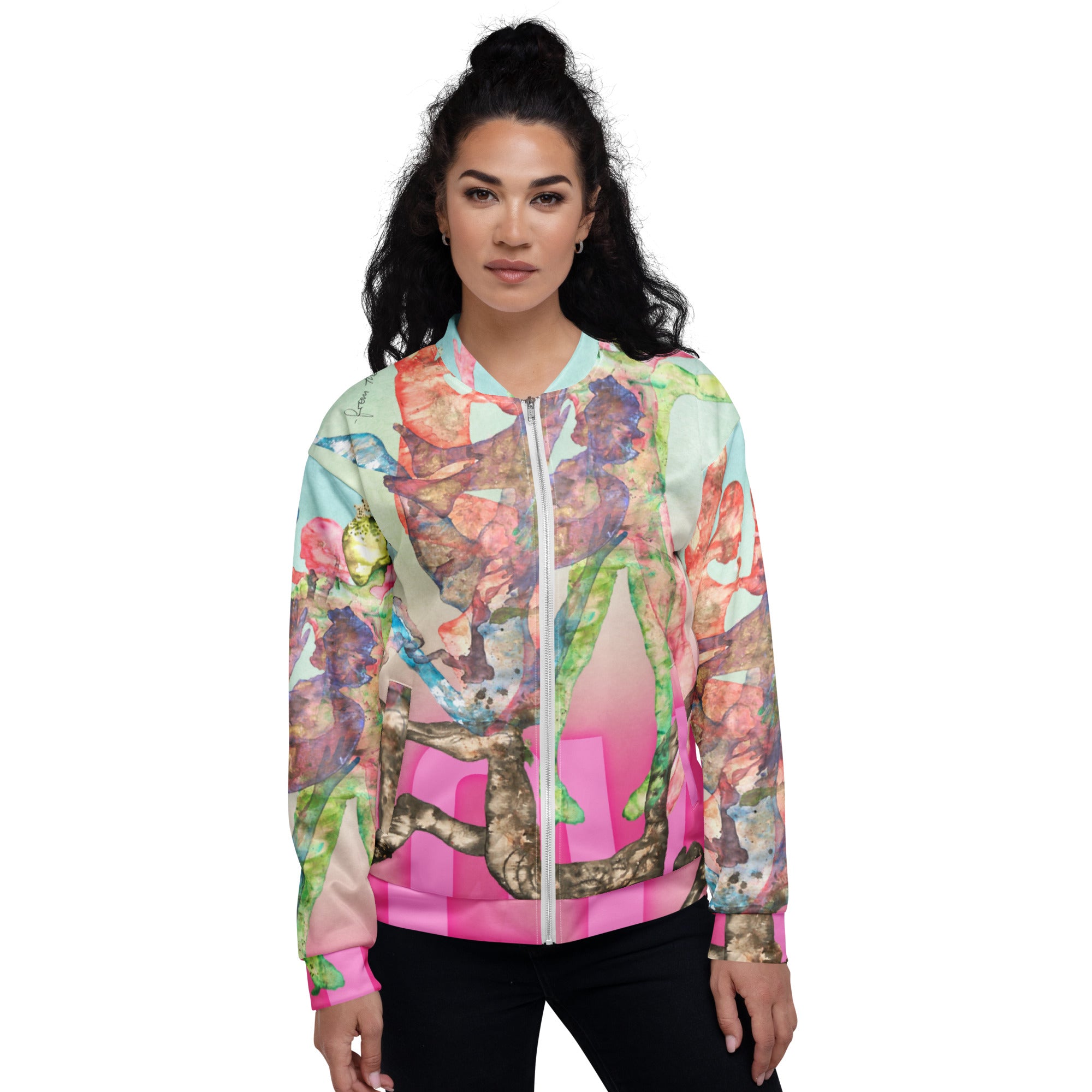 Add a little zing to your wardrobe with this vibrant All-Over Print Bomber Jacket. Wear it on a basic t-shirt, or layer it on top of a warm hoodie—it’ll look great either way. With a brushed fleece inside, and a relaxed unisex fit, this Bomber Jacket is just the stuff of the dreams, so be quick to grab yourself one!